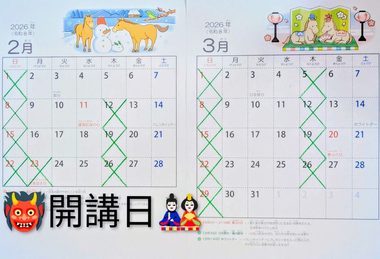 不定期で 所属学術学会・その他事情により臨時休講する場合もございます。