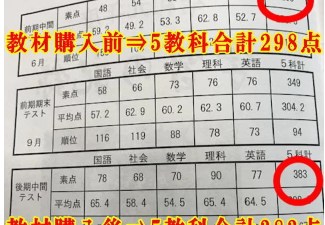 成績表「1」「2」を無くし、平均点+15点を最初の目標にします。内申書「最低オール3以上」を確実に出します。